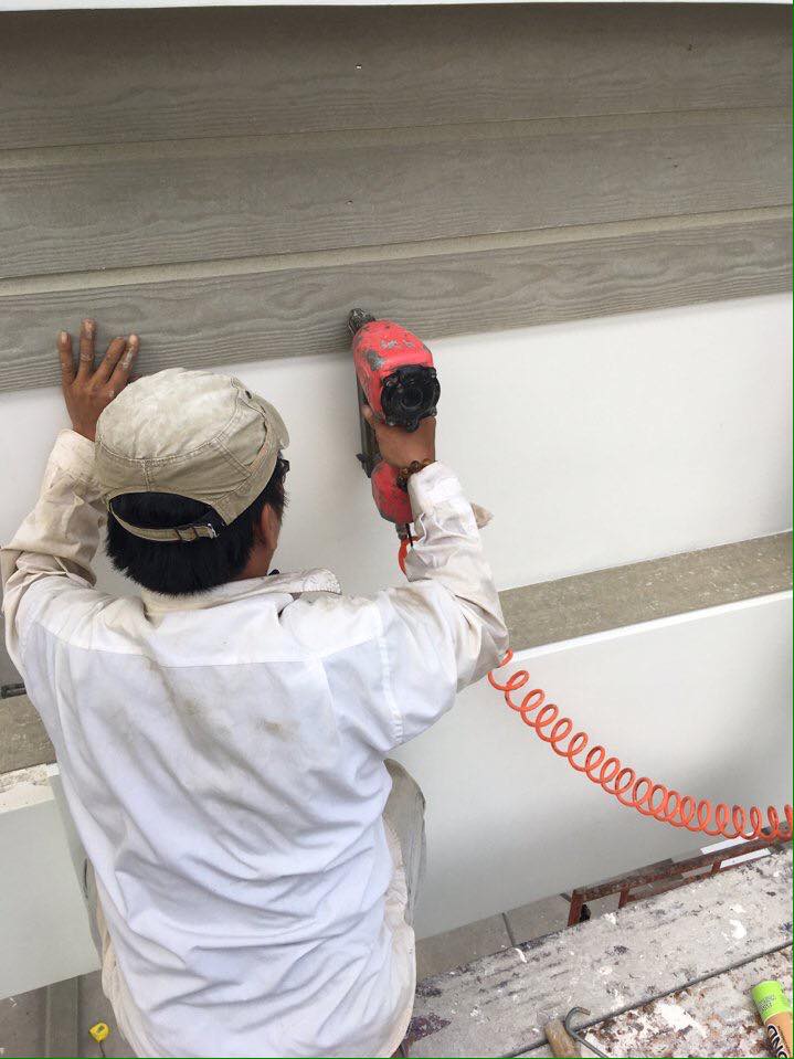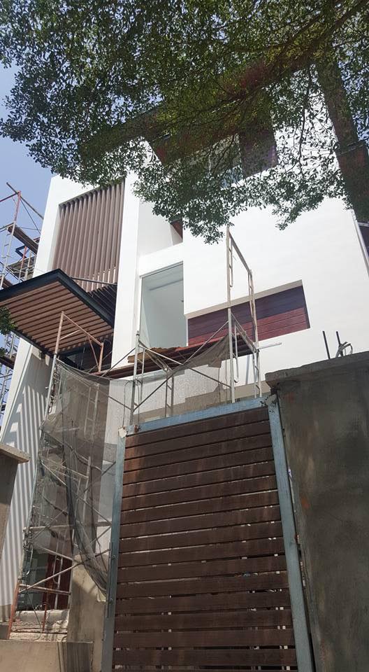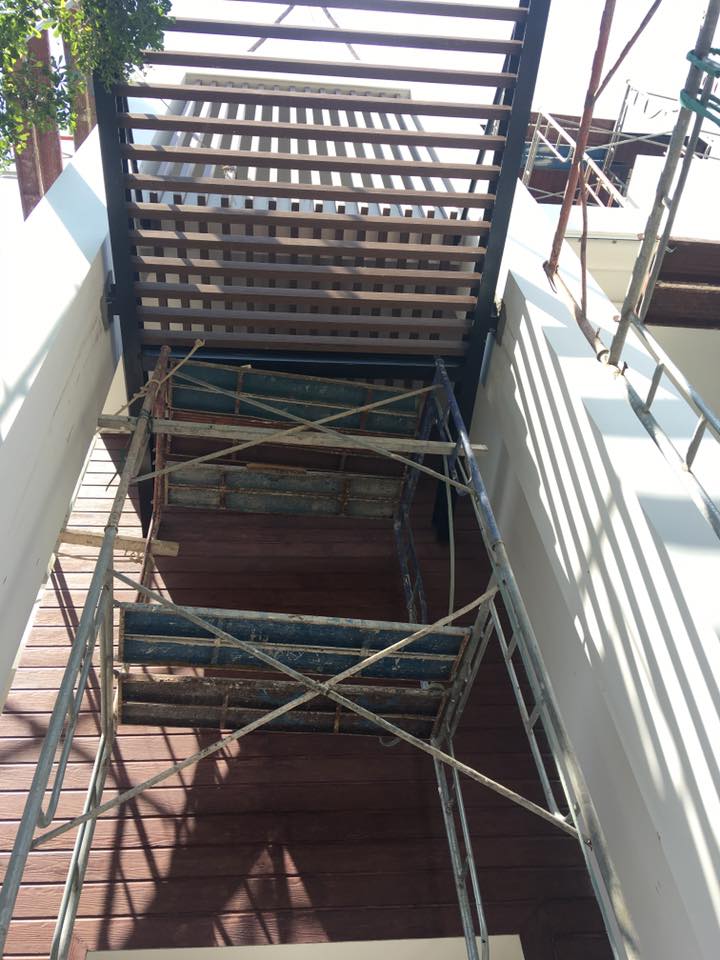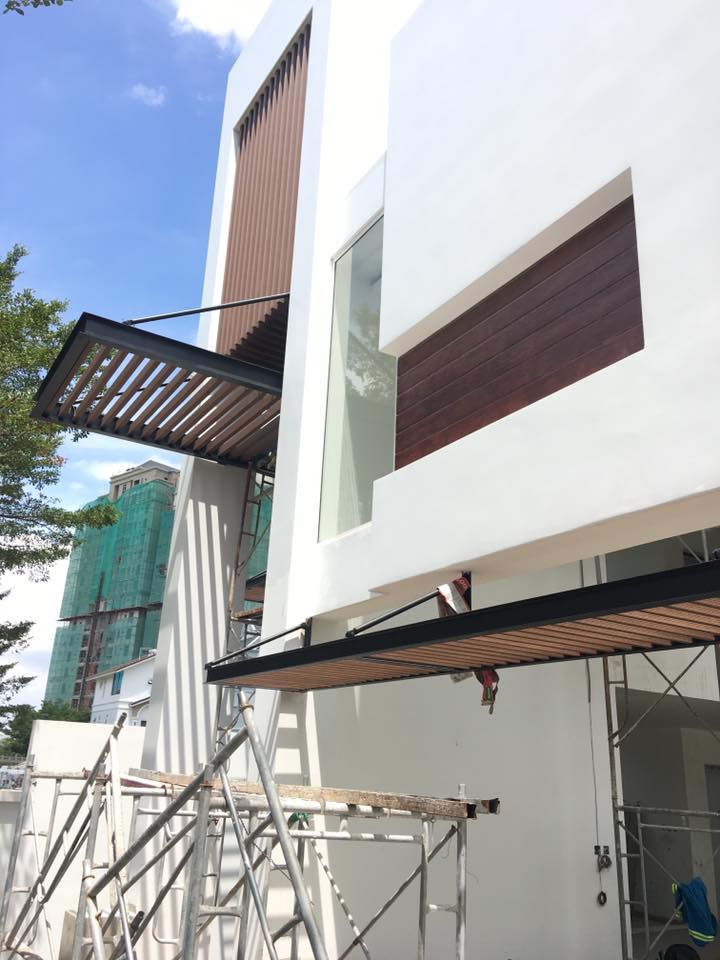 Cty Trường Khang Phúc chúng tôi nhận thi công , trang trí toàn bộ mặt tiền cho căn biệt thự trên với các hạng mục sau : vách , trần seno , decking sàn xi măng vân gỗ conwood ( Thái Lan ) và tất cả các hệ lam treo ( khung thép lam gỗ nhựa Nhật Bản ) + lam vách + cổng cửa .
