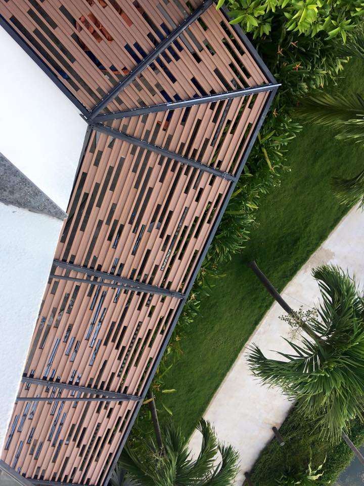 Cty Trường Khang Phúc chúng tôi nhận trang trí biệt thư trên với các hạng mục sau : decking sàn gỗ ngoài trời , các dàn lam gỗ nhựa ngoài trời mái kính , pergola khung thép lam gỗ , mái đón kính console , sân phơi mái kính , ốp vách gỗ nhựa ngoài trời